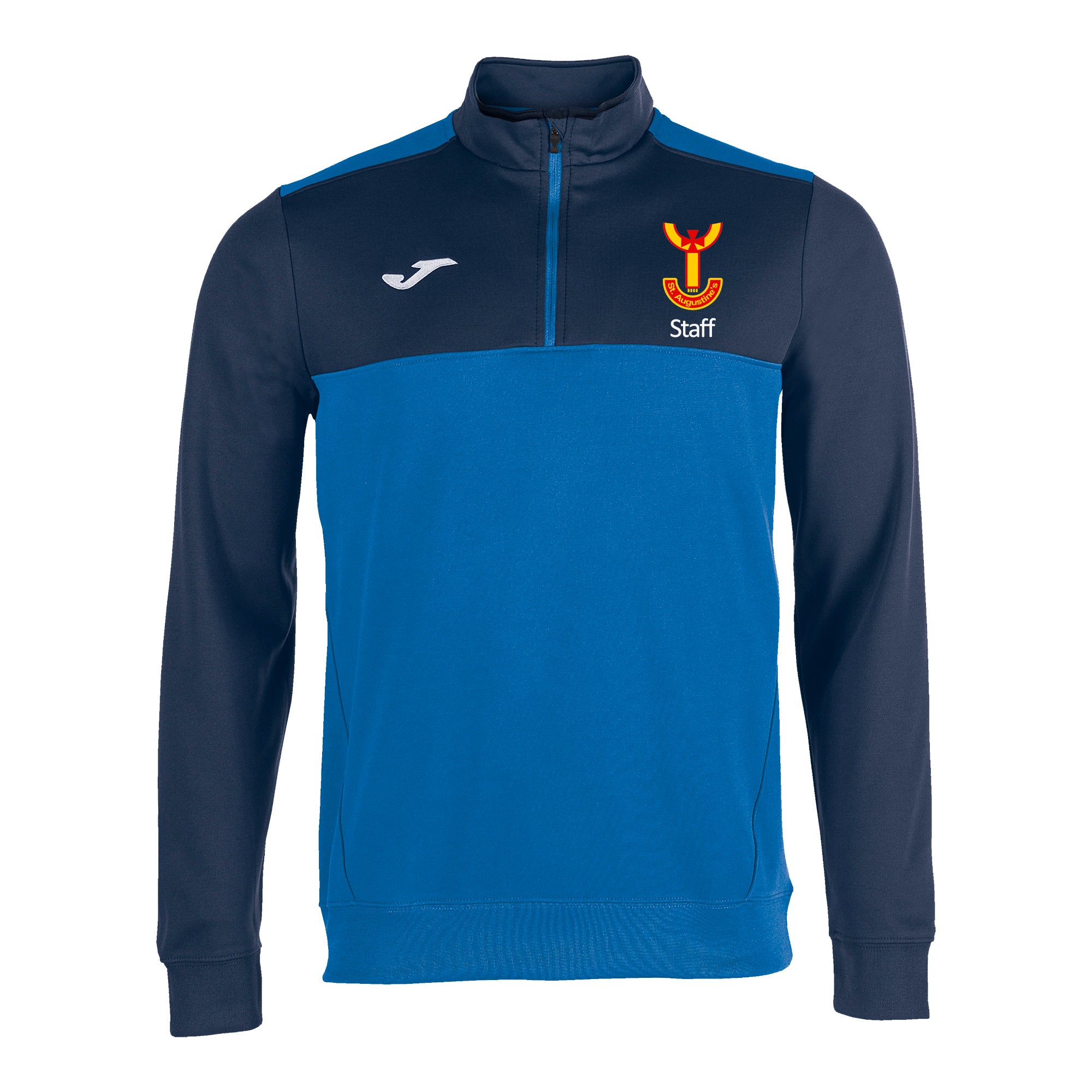 Half-zip sweatshirt stands out due to its contrasting yoke, forward shoulder seam, ribbing on cuffs and embroidered logo.